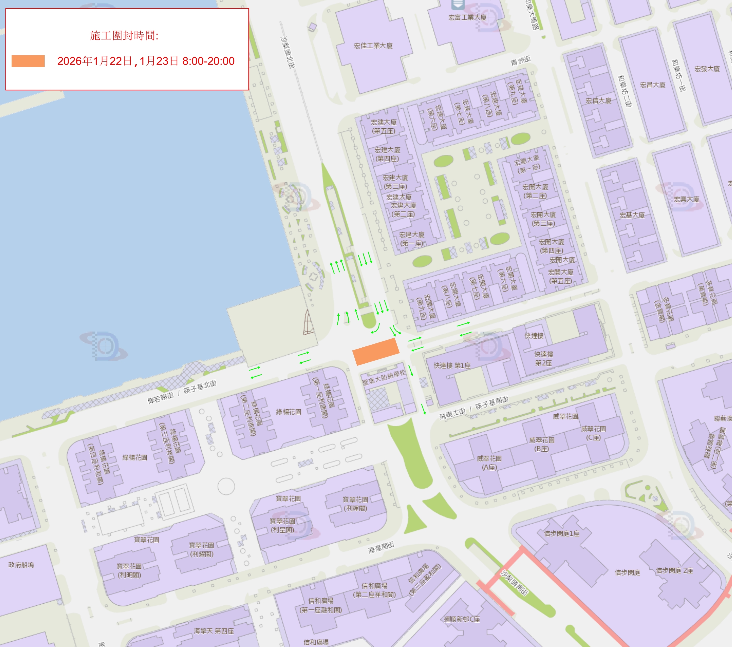 1. 2026年1月22日及1月23日上午8時至下午8時,沙梨頭南街與俾若翰街交界將實施有限度通車。(見附圖1)