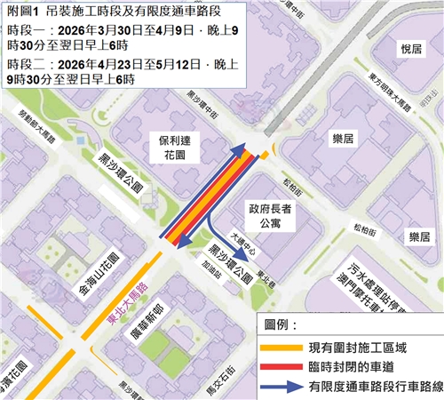 配合空中走廊鋼結構吊裝 東北大馬路3月30日起分段實施夜間臨時交管