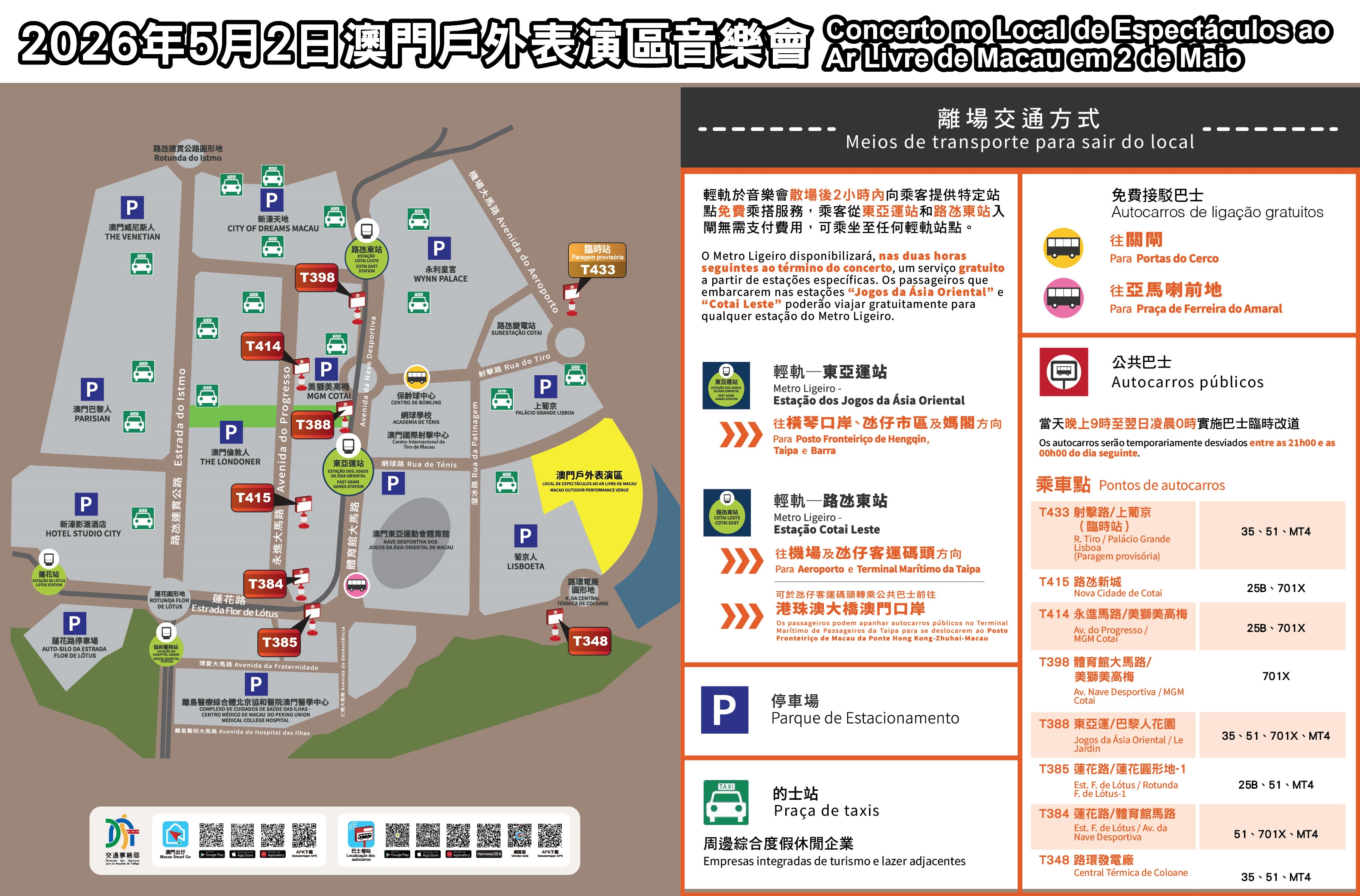蓮花路/體育館馬路、 東亞運/巴黎人花園、 機場大馬路/永利皇宮 |