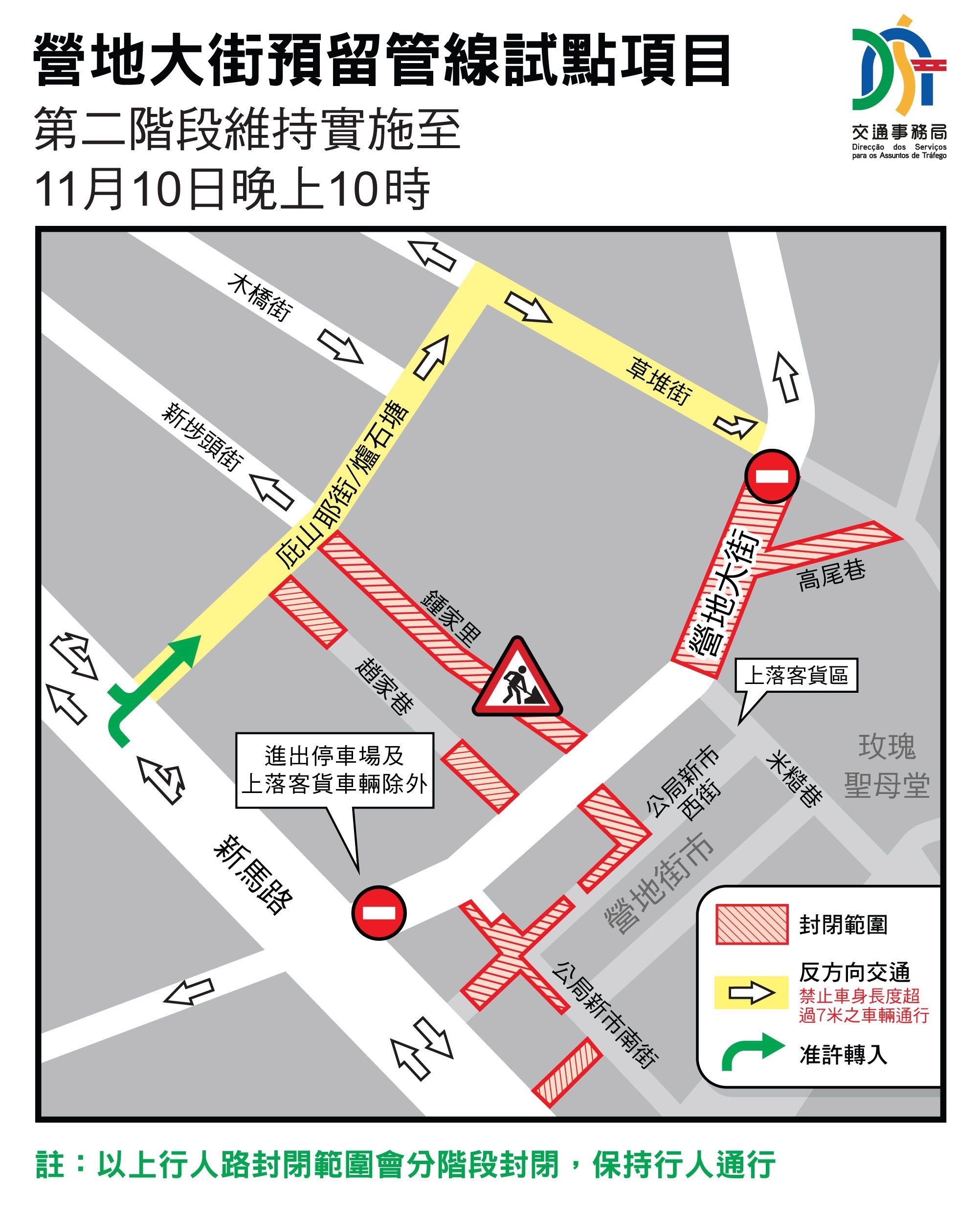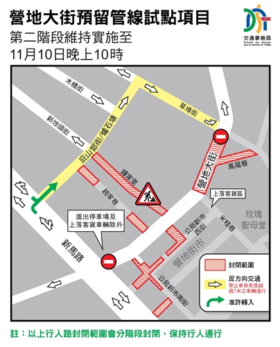 11月10日晚上10時起營地大街恢復原有行車安排