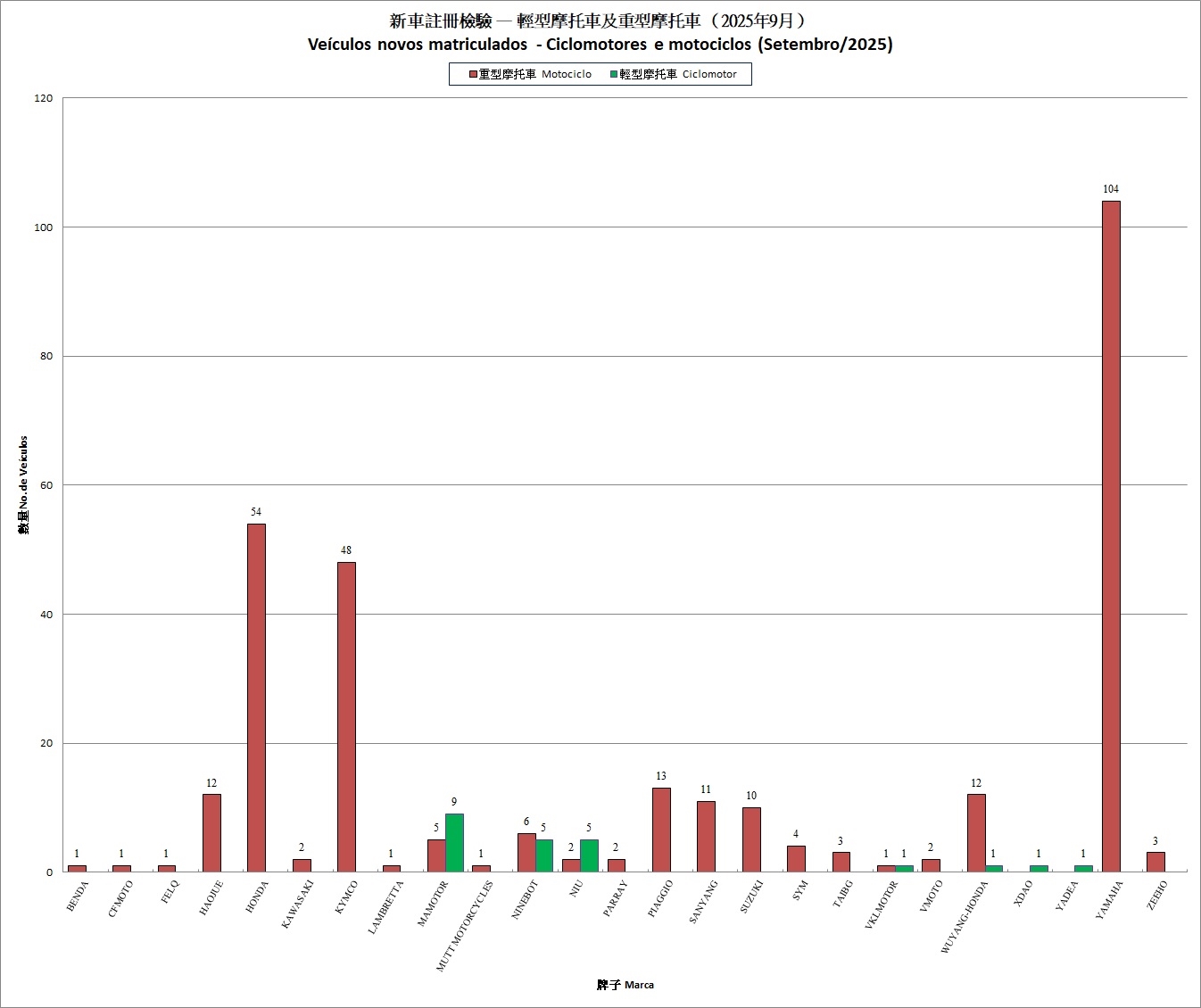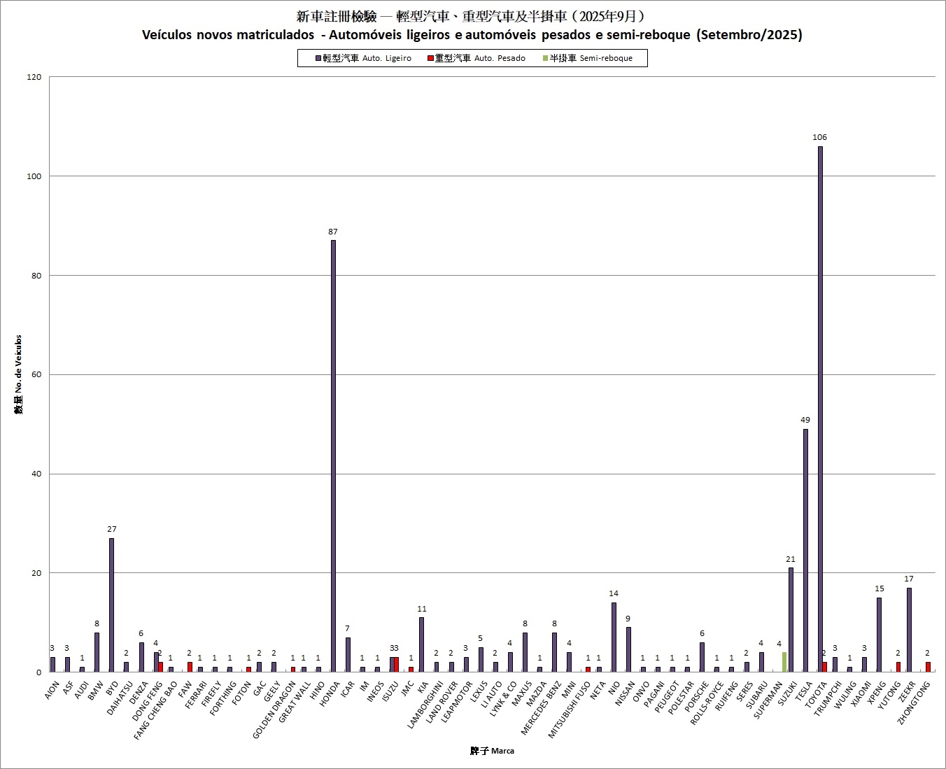 | 2025年9月份新車註冊檢驗 Veículos Novos Matriculados - Setembro/2025 | ||||||