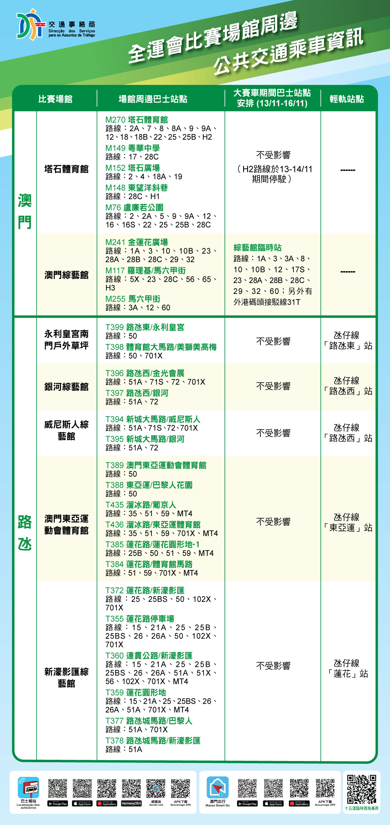 全運會比賽場館周邊公共交通乘車資訊 (07/11/2025)